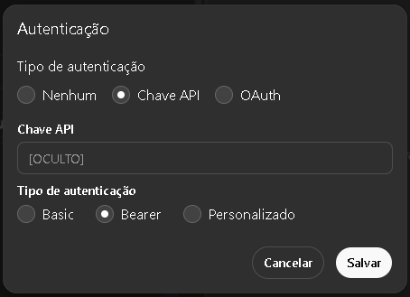 Autenticação por Bearer Token: chave única armazenada nas opções do WordPress; retorno 401 se ausente ou inválida.